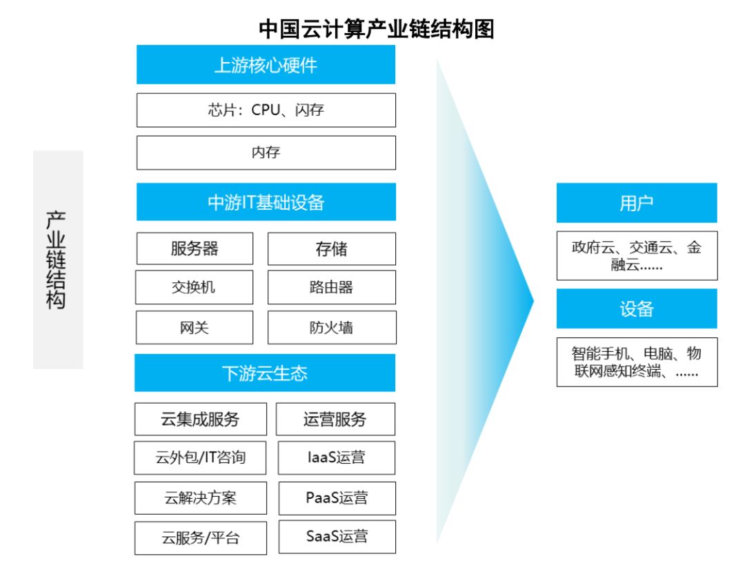 白皮书详细地介绍了上游核心硬件,中游IT基础设备,下游云生态的情况,结合当前产业发展状况并参考白皮书内容,不难分析出——想要推动我国IT产业发展,云计算和自主芯片的研发是重中之重。原因有以下两点: