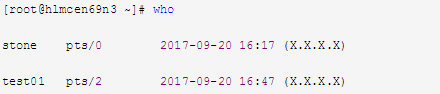 对应日志文件“/var/run/utmp”,相关命令示例: