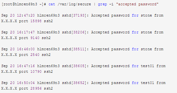 9.可以查看/var/log/secure日志文件尝试发现入侵者的信息,相关命令示例: