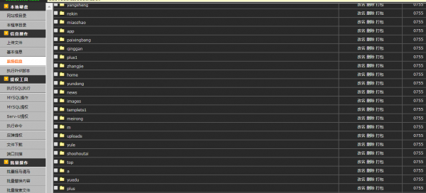 可以看到网站根目录,以及上传文件,查看系统基本信息,执行mysql命令,反弹提权,文件下载,服务器端口扫描,批量挂马,改名,删除文件,打包文件等管理员的操作。功能太强大了,那么客户的网站为何会被上传了webshell呢?