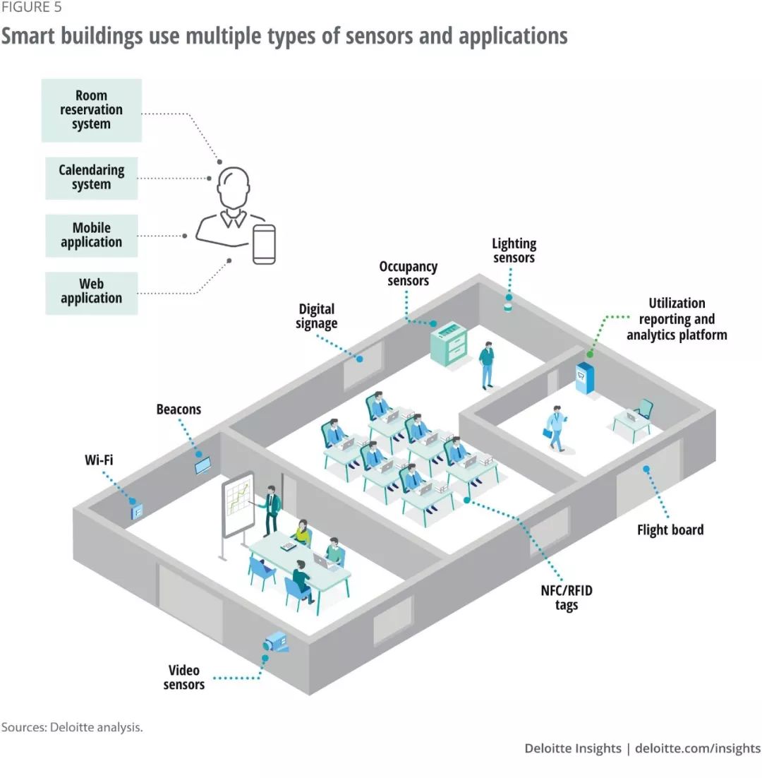 另外,建筑物生命周期中75% -80%的成本与其后期运营有关。现在很多商业住宅和办公大楼都有自动化控制或管理系统,例如通暖、中央空调以及嵌入传感器的智能照明系统等,它们都能与云平台或者边缘层级的主系统交互。其中,边缘服务器或网关通常用于发回云平台分析的结果,优化设备的操作或者调度。总之,边缘计算和云计算为建筑物提供了更加智能的资源管理。