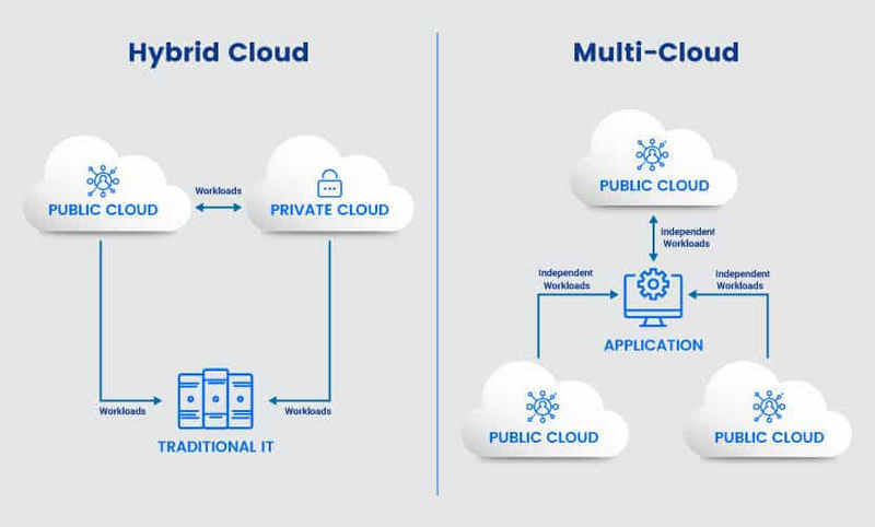 第一个重要的区别是混合云通常结合了私有云和公共云。对于由多个公共云组成的多云,则不是这样。