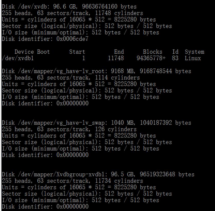 我们应该先来查看硬盘分区情况。来看数据盘的路径,比如:/dev/mapper/Xvdbgroup-xvdb1