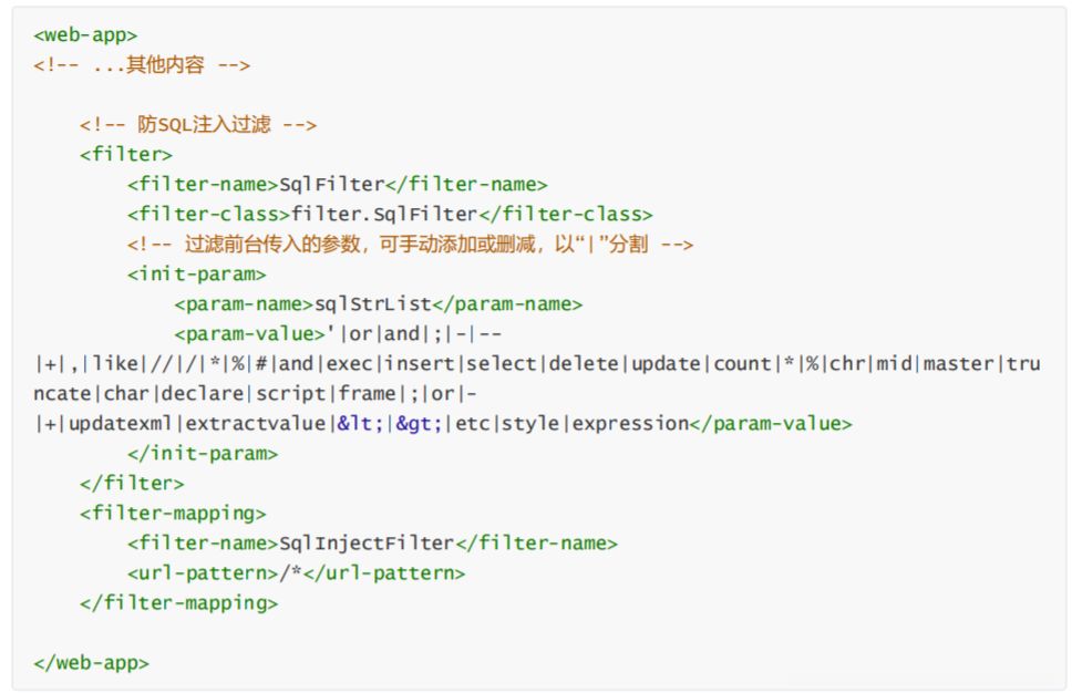 2. 输入过滤,可以参考SQL注入利用过滤器的方式,但该方法不推荐。