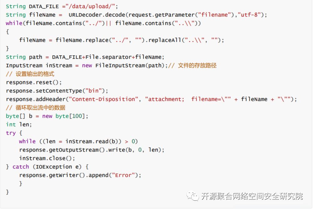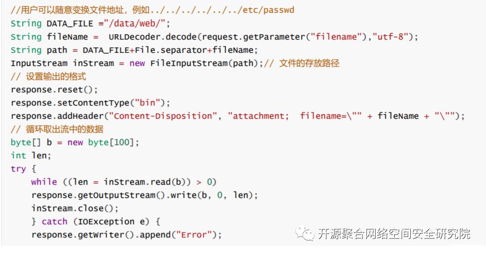 描述:处理用户请求下载文件时,允许用户提交任意文件路径,并把服务器上对应的文件直接发送给用户,这将造成 任意文件下载威胁。如果让用户提交文件目录地址,就把目录下的文件列表发给用户,会造成目录遍历安全威胁。恶意用户会变换目录或文件地址,下载服务器上的敏感文件、数据库链接配置文件、网站源代码等。