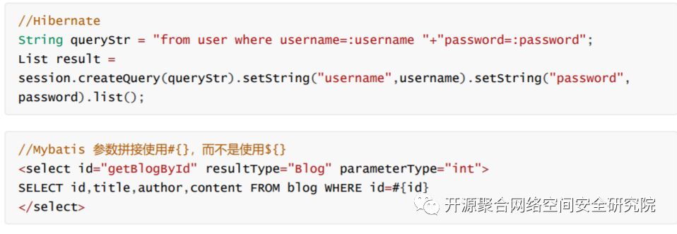 d.衍生URL跳转漏洞;// TODO Auto-generated method stub config = fConfig; } } //Hibernate String queryStr = "from user where username=:username "+"password=:password"; List result = session.createQuery(queryStr).setString("username",username).setString("password", password).list; //Mybatis 参数拼接使用#{},而不是使用${} SELECT id,title,author,content FROM blog WHERE id=#{id}