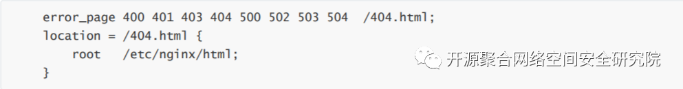 2. 修改nginx.conf文件或者网站的配置文件,在server节点配置一下内容,把常见的错误码,全部指定到404页 面。root节点是404.html页面绝对路径地址