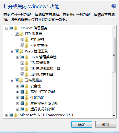 2.png 3.在弹出的窗口中选择“Internet信息服务”,FTP全选,Web管理工具和万维网服务默认选择,点击确定后,开始更新服务。