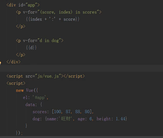 另外v-for也可以为数组索引指定别名(或者用于对象的键):