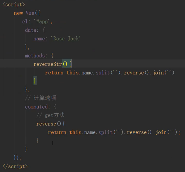 这样,模板不再简单和清晰。在实现反向显示 message 之前,你应该通过一个函数确认它。所以,Vue.js提供了计算属性来让我们去处理实例中的复杂逻辑