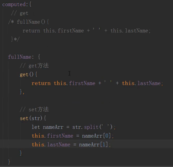 计算属性默认只有 getter ,不过在需要时你也可以提供一个 setter :