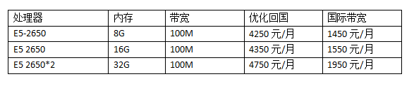 香港服务器带宽资源对于服务器或网站有着很重要的地位,除了上面说的防御攻击外,还有速度、稳定性、流量承载等等都与带宽大小有关系,比如影视站、资源下载站、直播平台、游戏、大流量站等这些都是对带宽消耗比较大的网站,有一定需求,下面是香港服务器100m大带宽的租用费用: