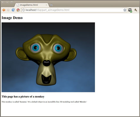 网页不仅具有文本功能,而且如果使用HTML5构建网页,则可以添加多种文件类型的图像,包括 .jpg,.gif和.png。该图显示了一个带有嵌入式图像的网页。随后的代码向您显示页面的代码。