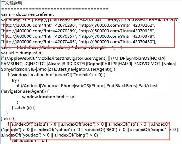 这下大家应该清楚了,攻击者对代码进行了3次的加密再调用,来实现百度快照的JS劫持跳转。