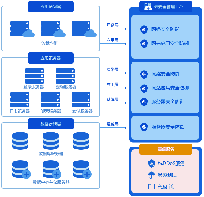 在网络层、应用层、系统层对各类攻击进行防护,防护过程中游戏玩家体验不受影响。